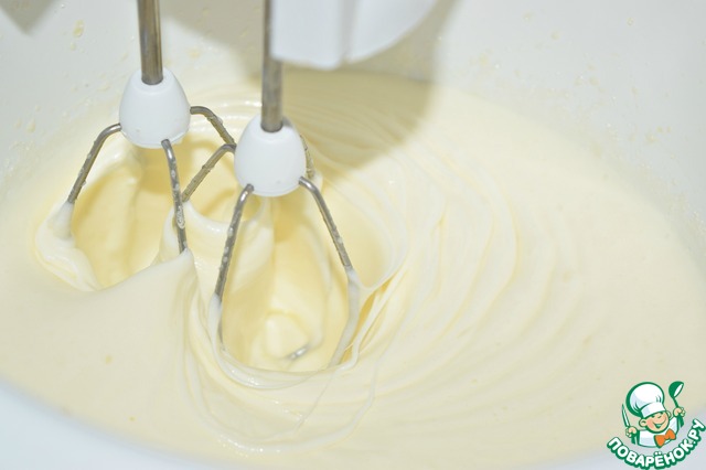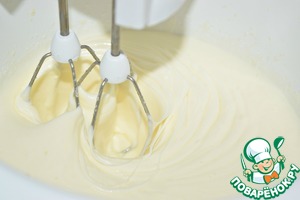 Яйца взбить с сахаром добела на самых мощных оборотах миксера.