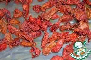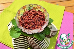 Подвяленную клубнику нарезать на мелкие кусочки.