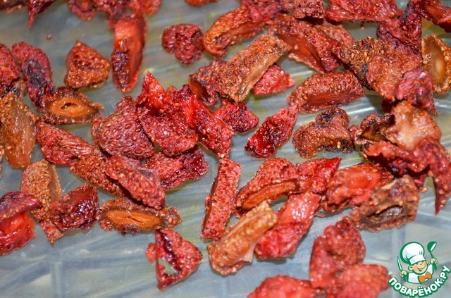 Собрать клубнику. Для сушки я беру самые мелкие.