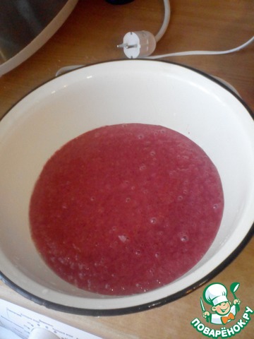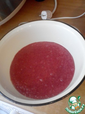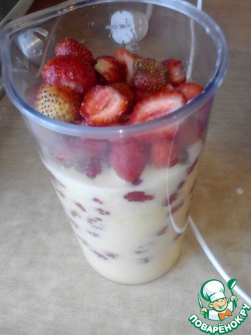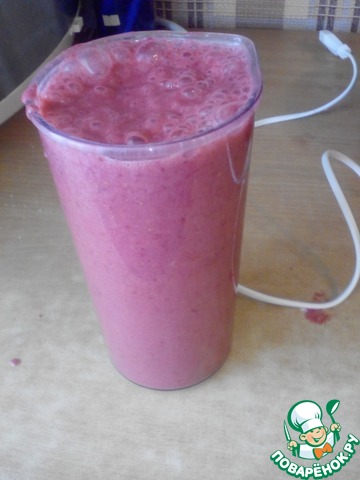 • Далее, в эту же емкость добавила малину и клубнику (поменяла насадку на блендере)