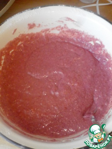 • Добавила 300 грамм муки, и вымешивала ложкой до однородной смеси.