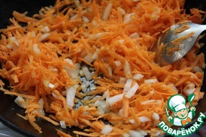 Одну луковицу мелко нарезать и пожарить с натертой на крупной терке морковью. Поставить остывать.