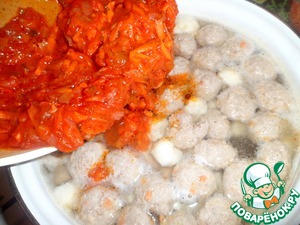 Рецепт «Рассольник с гречкой, фрикадельками и овощами»: