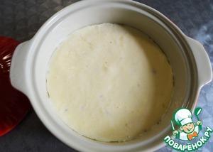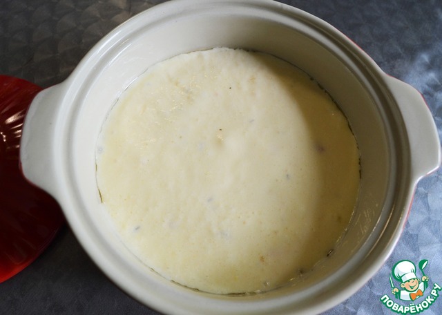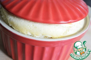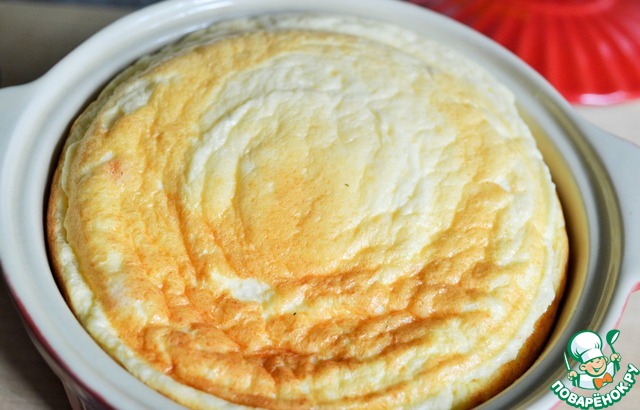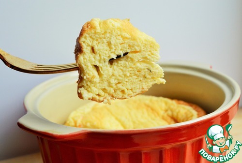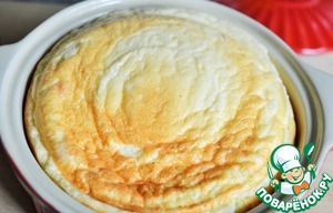 Творог и белки аккуратно перемешиваем. Выкладываем омлетную массу в смазанную маслом жаропрочную посуду, закрываем крышкой и ставим в духовку при температуре примерно 100-120 градусов на 20 минут.