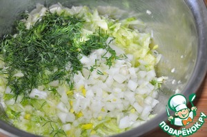 Добавляем мелко нарезанный лук и укроп.
