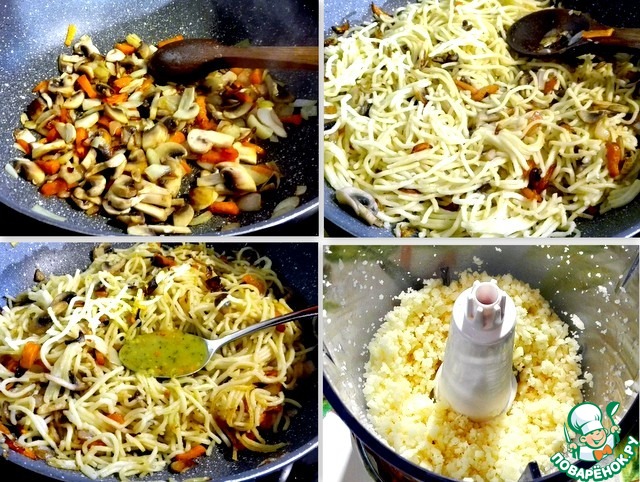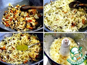 и морковь, нарезанную ломтиками. Спагетти тоже