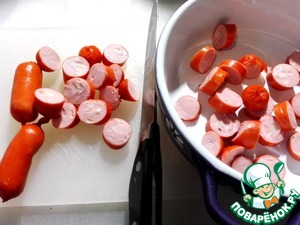 - Сосиска (маленькие, полукопчёные с сыром) — 15 шт