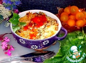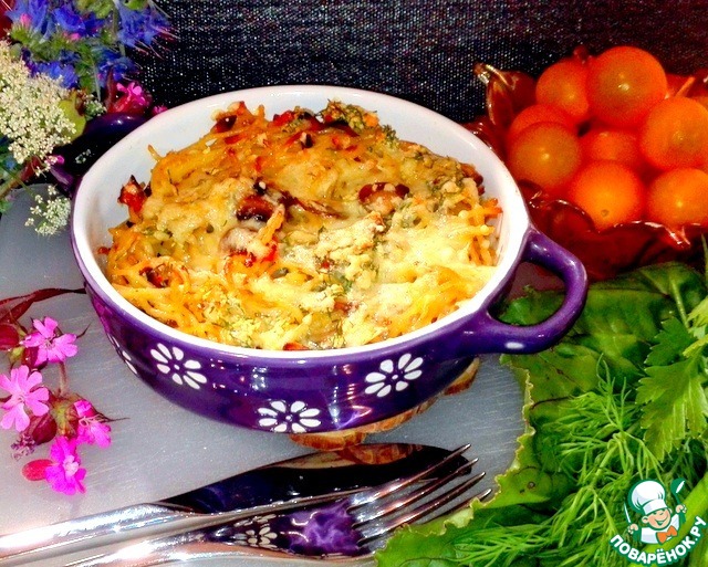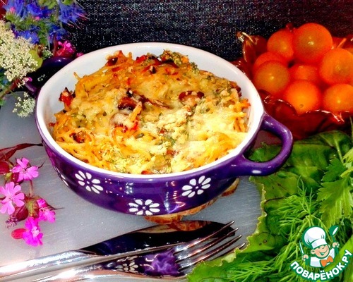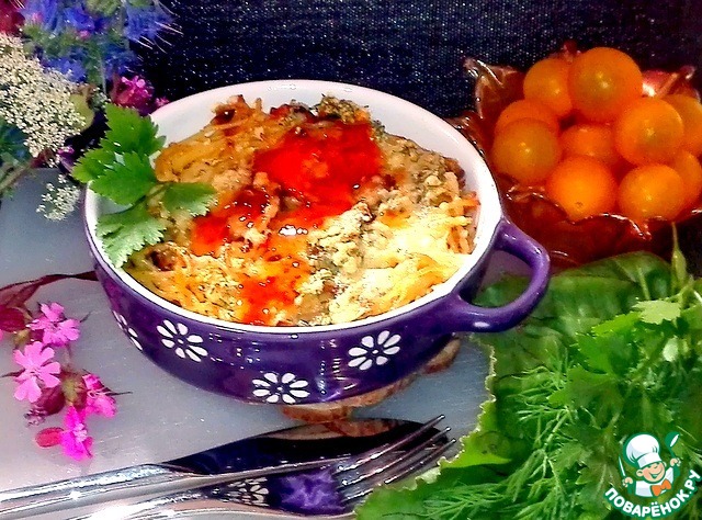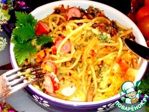 Рецепт «Порционная запеканка из спагетти с сосисками»: