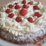 • 6. Собираем торт: каждый корж (кроме верхнего) промазать сначала клубничным джемом, после кремом