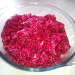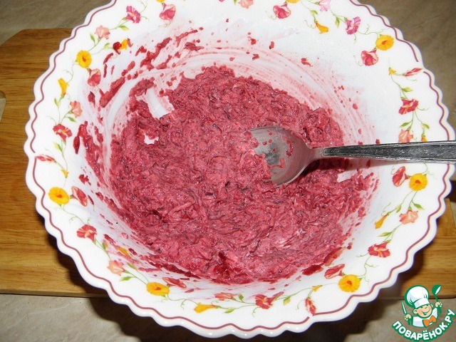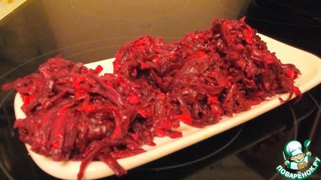 Свеклу отварить до готовности, дать остыть, натереть на мелкой терке,