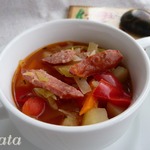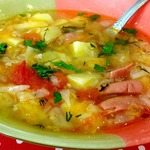Суп с колбасками и молодой капустой