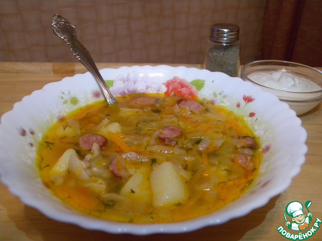 Ингредиенты для «Суп с колбасками и молодой капустой»: