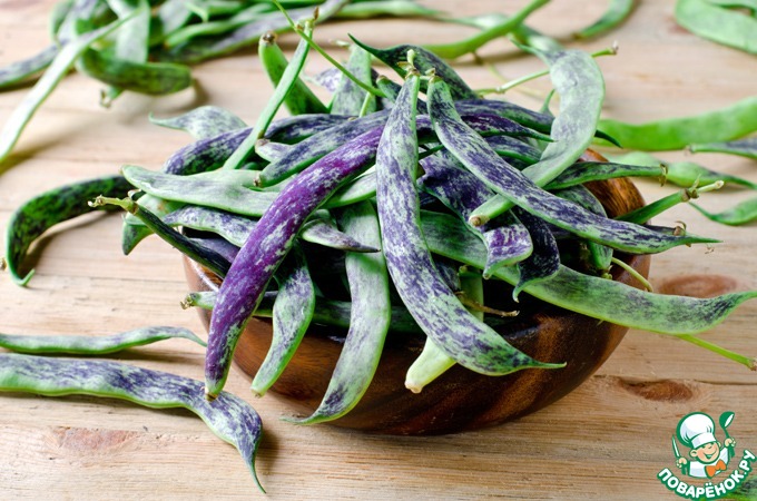 Подготовить зеленую фасоль, обрезать кончики и нарезать ее на кусочки 2-3 см. У меня вот такая красавица фасоль.