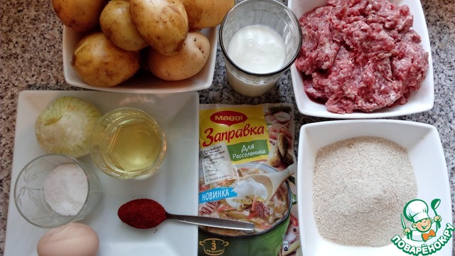 Хочу напомнить блюдо, которое все знают, но часто забывают о нем. Это картофельные зразы с начинкой из мясного фарша. Я добавила в начинку пикантную заправку Магги для рассольника - и привычные зразы заиграли новыми красками. Для ужина в кругу семьи - то, что надо!
