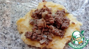 Формовать зразы удобно на пищевой пленке, смазанной растительным маслом. Выкладывать по столовой ложке с горкой пюре, сверху фарш. Пленку собрать вверх в узелок, начинка окажется внутри.
