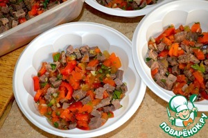 • Мясо режем кубиком.