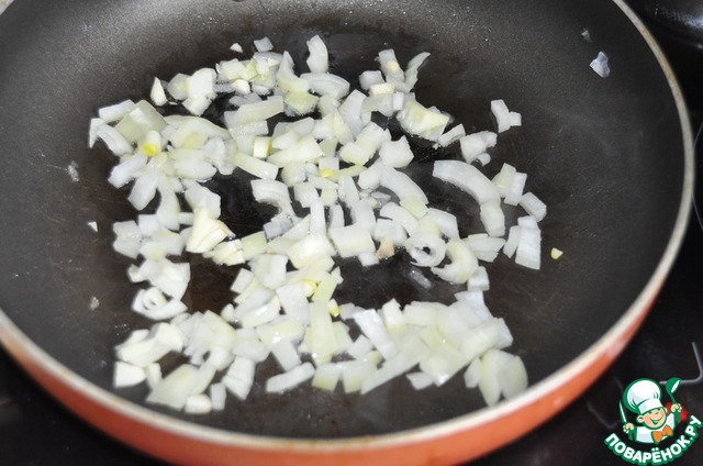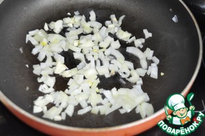 Лук и чеснок мелко режем и слегка пассируем на растительном масле до прозрачности.