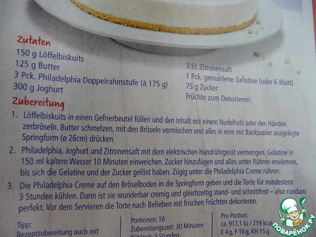 Ингредиенты для «Торт без выпечки "Филадельфия"»: