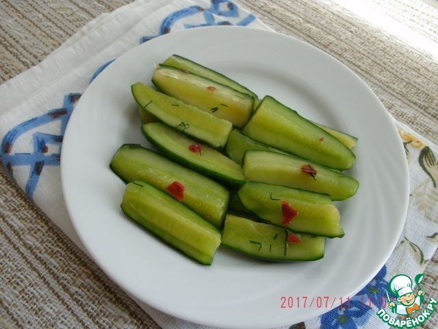 Ооочень вкусно!!! Теперь это наш любимый рецепт быстрых огурцов))) острый перец был только сушеный, но это дело не испортило! Большое спасибо за рецепт!