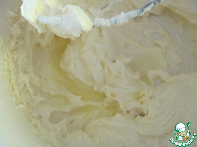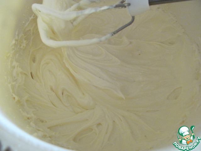 Крем-чиз (сливочный сыр) взбить с сахаром и ванилью. Добавить лимонный сок и перемешать до объединения.