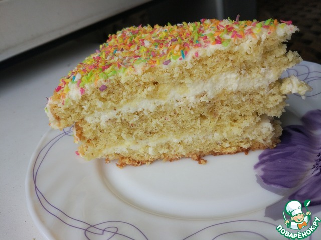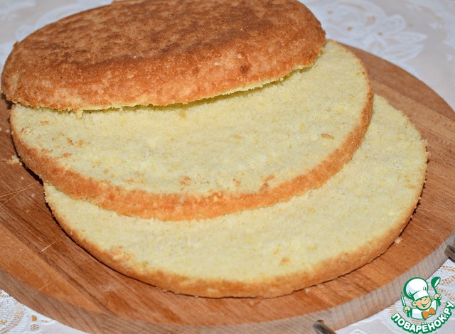 Каждый корж пропитать молоком, в котором была замочена кокосовая стружка. (верхний корж стоит пропитать сильнее)