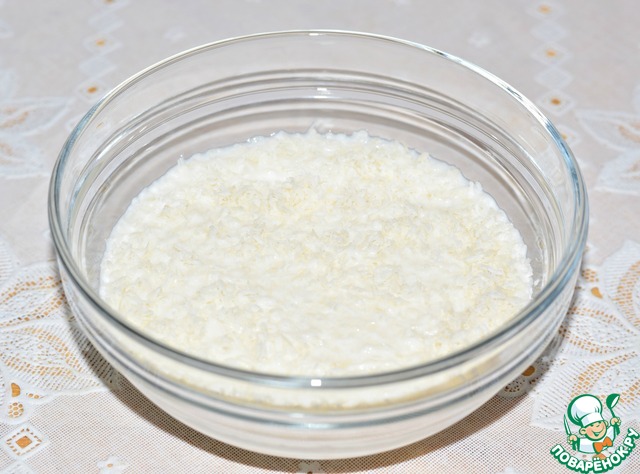Кокосовую стружку залить теплым молоком на полчаса. -