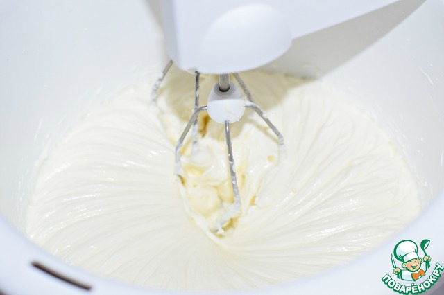 Яйца взбить с сахаром на самых мощных оборотах миксера до увеличения массы в 3-4 раза.