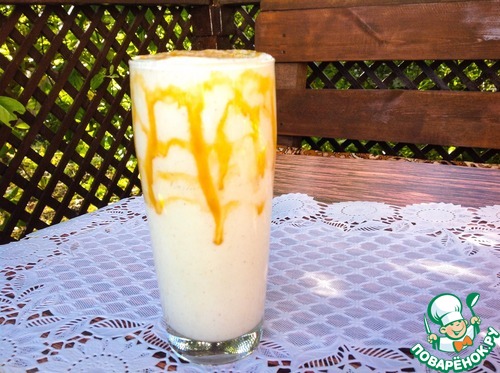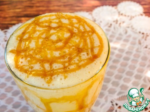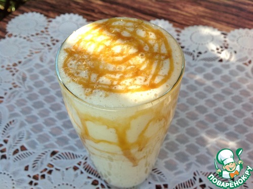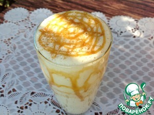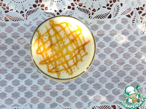Напиток разлить по бокалам, украсить карамельным соусом и немедленно подать.