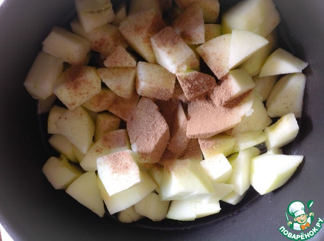 Яблоки очистить от кожуры и семенных коробок. Нарезать кубиками.