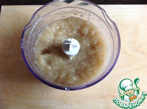 Для приготовления 2-х порций напитка в чашу миксера поместить 6 ст. л. приготовленного пюре, мороженое и молоко. Хорошо взбить. Густоту напитка можно регулировать, добавляя молоко или яблочное пюре.