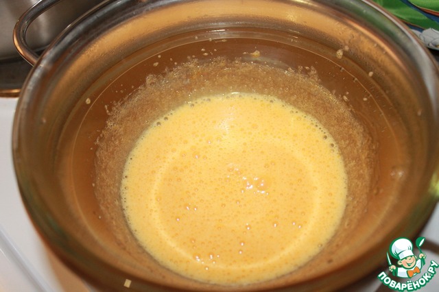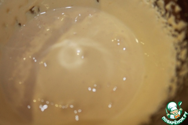 Масса должна через 5-7 минут побелеть и увеличиться в объеме. Взбиваем ее до исчезновения крупных пузырей и снимаем с огня.