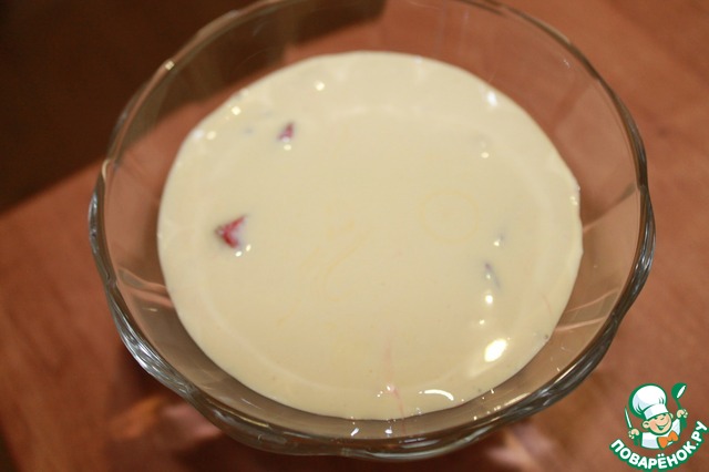 Выкладываем половину массы в креманки с клубникой. Креманки ставим в холодильник на два часа.