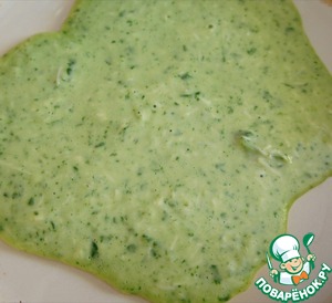 Все просто и быстро! Если возьмете несоленый сыр, соль добавьте по вкусу. Шпинат помыть, измельчить блендером. Сыр и чеснок трем на мелкой терке. Сыворотку подогреваем до теплого состояния. Добавляем яйцо, муку, разрыхлитель, шпинат, чеснок, перемешиваем. Добавляем сыр, перемешиваем. Пробуем на соль.