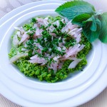 Горошек отварить в течении 5 минут. Мятные листики и укроп мелко нарезать.