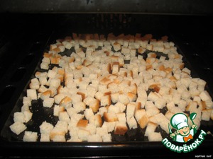 Затем натереть сыр на мелкой тeрке. Уложить на дно формы тонким слоем. Полить 3 -5 ложками соуса. Сверху выложить слой смеси рыби с яйцом. Посыпать кубиками булки и полить соусом. Теперь положить слой помидор и огурца. Опять кубики булки и сверху соус.