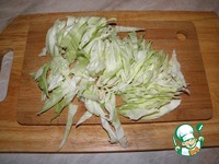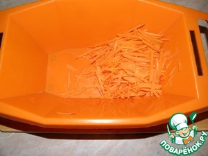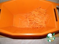 Морковь натереть на корейской терке (или нарезать тонкими полосками). |