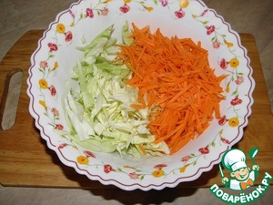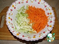 Соединить капусту с морковью (мять капусту руками не надо). |