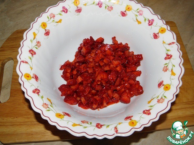 Клубнику промыть, очистить. нарезать маленьким кубиком