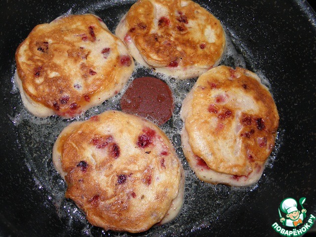 На сковороде разогреть растительное масло, выкладывать и формировать оладьи ложкой