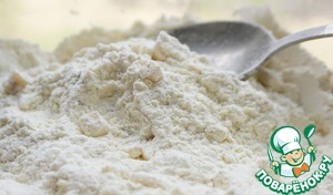 Готовим сухую составляющую: смешиваем муку, соль, сахар и разрыхлитель. -