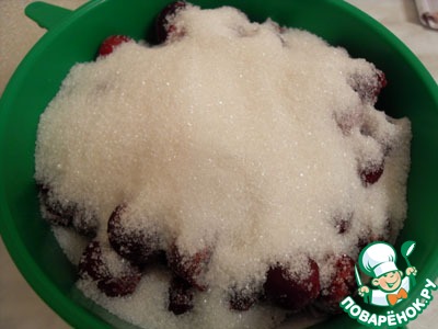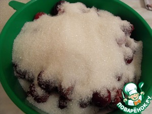 Вишню засыпьте сахаром и дайте образоваться соку, который затем слейте.