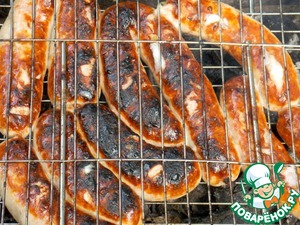 Делаем купаты и обжариваем их до готовности на седых углях.
