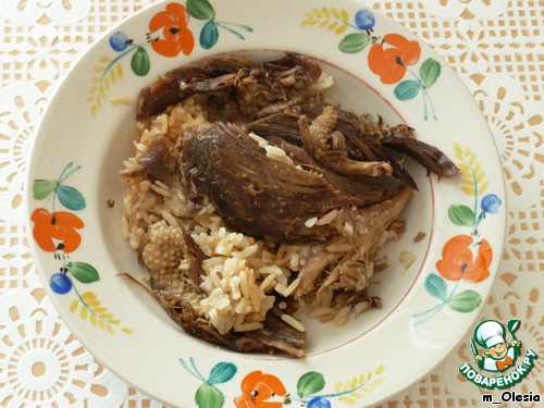 Нежный вкус риса, запеченного с луком и уткой. Очень вкусно.