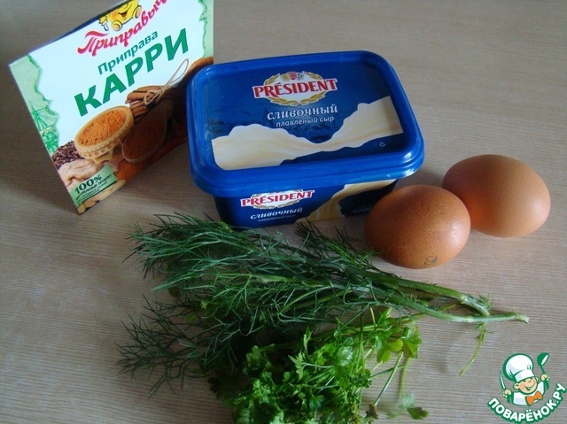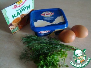 Ингредиенты для «Глазунья с плавленым сыром и карри»: