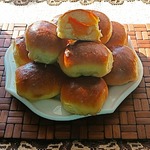 Булочки можно было бы назвать "южными" или "курортными". Кто отдыхал на море, тому наверняка знаком незабываемый вкус этих сладких ароматных булочек. В каждом курортном местечке есть рыночек, на котором рано утром местные женщины продают отдыхающим горячие ещё духовые пирожки с абрикосами, сливами, вишнями или персиками. Булочки очень хороши на завтрак.