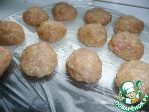 Смочить руки водой и сформировать из фарша шарики (размер по вашему желанию), стараясь не сжимать их слишком сильно.