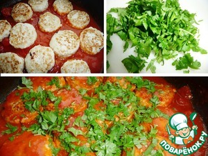 Измельчить петрушку, отключить огонь и добавить ее в фрикадели.