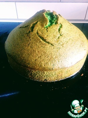 Заранее выпекаем коржи. В оригинальном рецепте используются два маковых и один обычный. Нам очень нравится шпинатный бисквит. Я пеку по замечательному рецепту поваренка Аvani:
