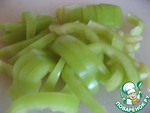Перец болгарский нарезать соломкой.