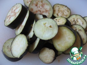 Баклажаны помыть, нарезать кружочками и чуть-чуть посолить, чтобы выделилась горечь.